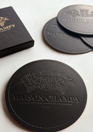 Maison Champy : un élégant set de sous-verres en cuir revalorisé, fabriqué en France